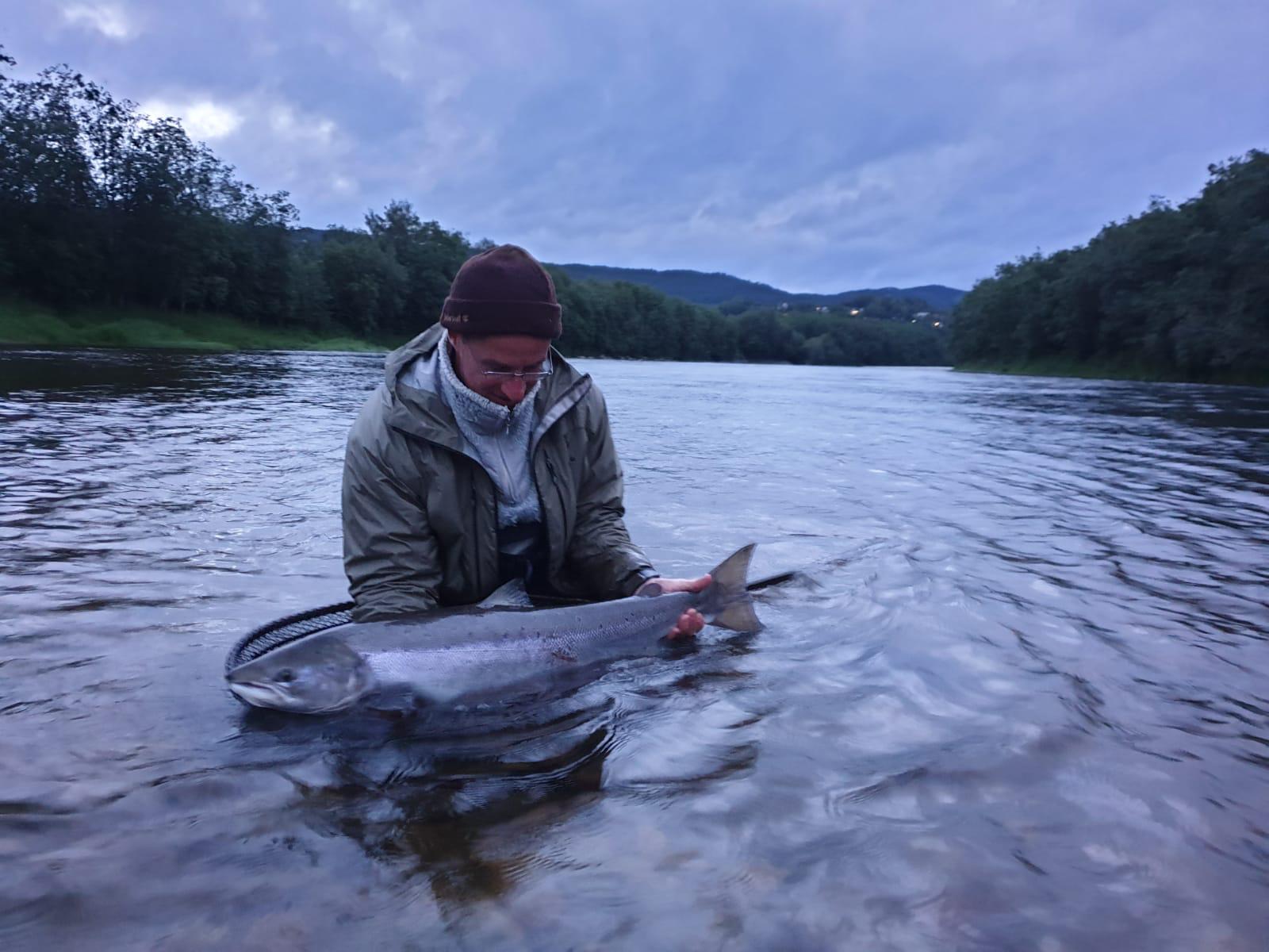 Hyvä kalastusviikko Gaula Flyfishing Lodge alueellamme. Saimme yhteensä 23 lohta ja 2 meritaimenta. Richard Meigh sai 111 cm/14 kg lohen Stasjonshölenistä, joka oli viikon 27 suurin lohi Gaula-joen perhokalastusalueeltamme. Olosuhteet Gaula-joella olivat hyvät.