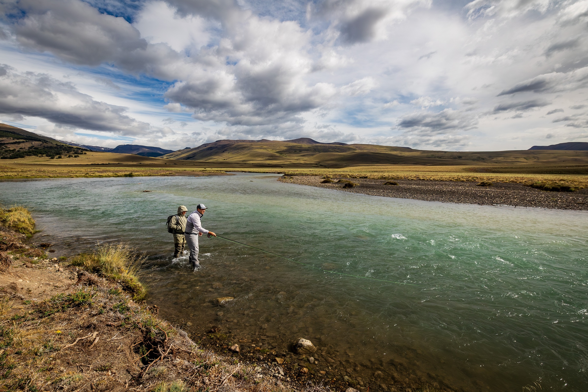 Rio Guanaco-joella kalastamme paikallisen kalastusoppaan johdolla, 2-3 kalastajaa per opas. Rio Guanaco on pieni/ keskikokoinen joki leveydeltään 15-25 metriä joka tarjoaa hienoja, vaihtelevia pooleja. Kuningaslohen perhokalastuksessa voidaan käyttää sekä yhden- että kahdenkäden perhovapoja olosuhteiden mukaan ja kalastamme ’pyydystä ja päästä’ periaatteella.